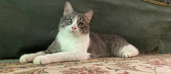 Now sporting a huge smile as well as a perma-wink, she doesn’t seem to know that anything’s special about her. She’s almost 2 years old, a 9 pounds super model and cat-friendly, super affectionate, jolly and full of good vibes. She’s healthy and full of energy constantly playing with toys. Pure is all gas no brakes – headed straight for your lap or even your shoulder!