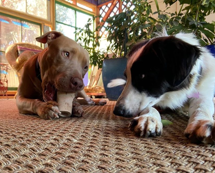 While Nafas is a bit scared of cars and loud noises, she’s getting more and more used to them every day. She’s also a bit weary of dogs she doesn’t know, but she’s shown that she can accept them with proper introductions and socialization. Nafas also currently gets an Adequan shot once a month to ensure that the muscles in her one hind leg stay strong.