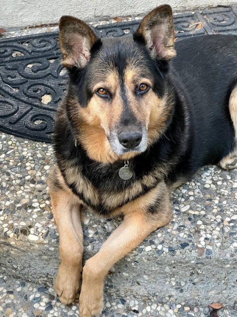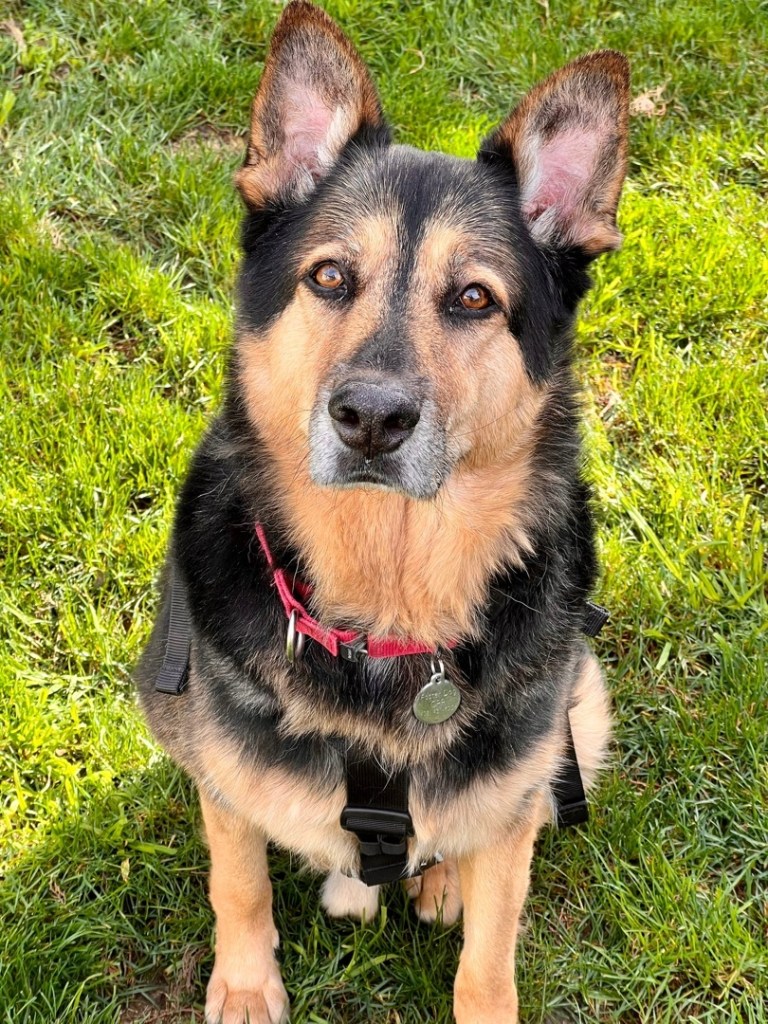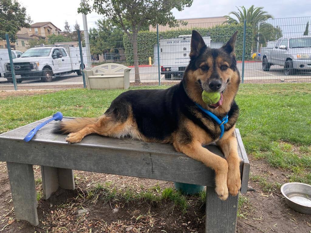 Handsome and happy 7+ years old Al is a German Shepherd/ Australian Cattle Dog/ husky mix. Not only does his breed mix make Al handsome (and SO FLUFFY), it also gives him smarts and great focus. He already knows how to walk nicely on a leash, how to “sit” for a treat and offer his paw for a “shake,” and that he should potty outside! Al loves learning new things and is motivated by high-value treats, so is easy and fun to train.