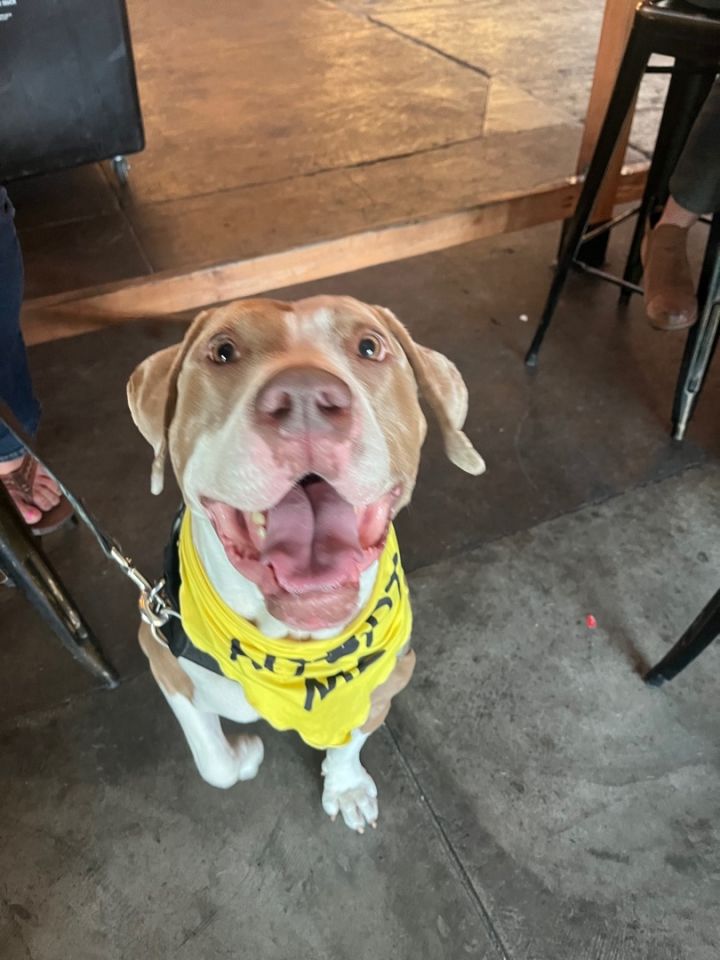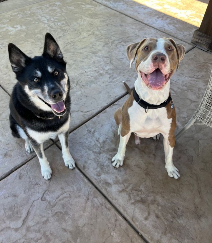 Brawny is not reactive to other dogs. When passing another dog on a walk, he will politely sit and wait for a treat until the other dog has passed. He plays nicely with other dogs, and especially loves wrestling with his foster brother! Brawny would make a good older dog-brother in any family, as he is able to gently, but firmly, issue appropriate corrections to other dogs’ misbehavior.