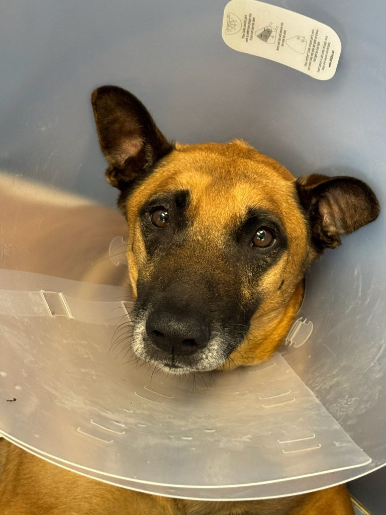 But recently, Roux’s journey took a difficult turn. His vet discovered a large bulging disc in his lower back—a painful condition he endured silently, never once complaining. To relieve his pain, Roux underwent a laminectomy surgery, where part of the spinal bone was removed to take pressure off his nerves and spinal cord.