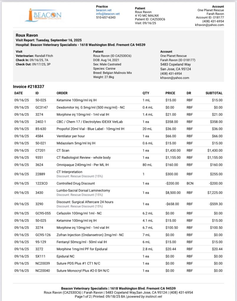 Your donation will go directly toward covering the cost of Roux’s surgery—the price we pay to give him the pain-free, joyful life he deserves. Roux has given nothing but love and loyalty through his journey, and now it’s our turn to show up for him.