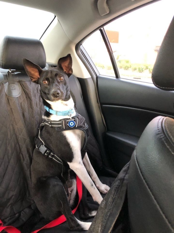 Domino is so easy to train, his foster family suspects he may be a genius. He is leash-, crate-, and house-trained, learned “sit” and “touch” in less than a week, and is already learning “lay down” and “watch me.” Domino would benefit from a little more training, specifically on not hogging treats, attention, and the couch! He is very treat-motivated, so he can learn anything with positive, reward-based training.