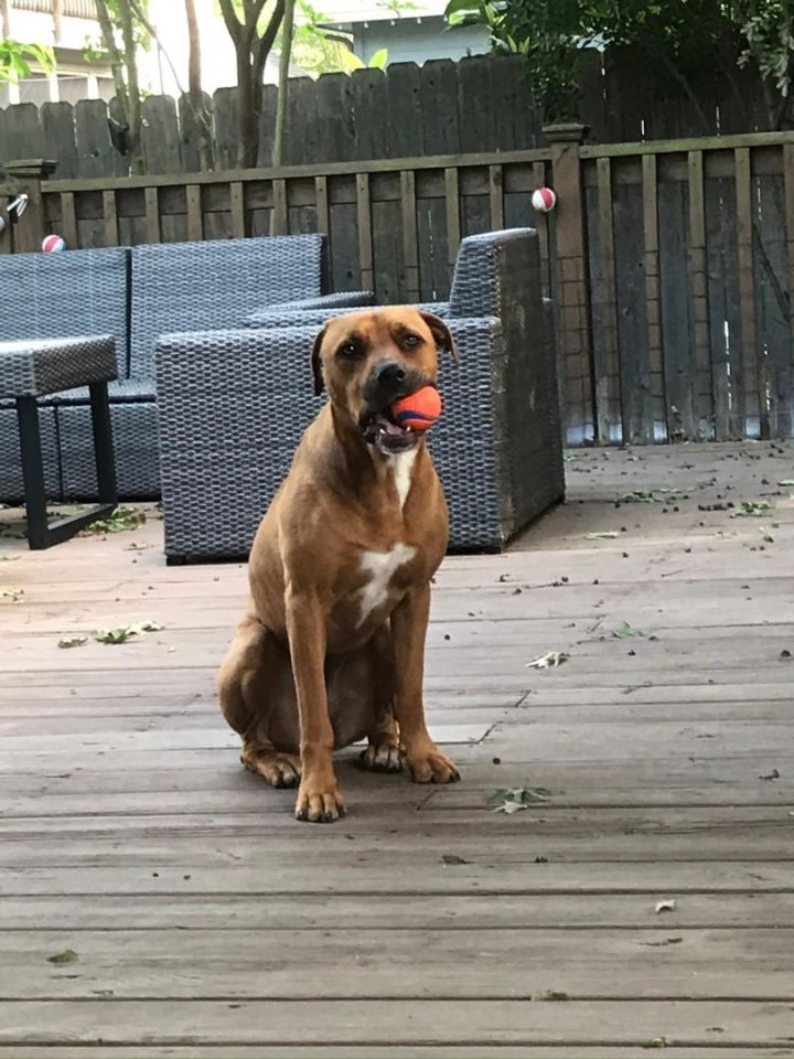 Maggie is a born outdoorswoman, and loves snoozing in the sun, playing fetch with her humans, running on the beach, and visiting dog parks. She has been fine at dog boarding facilities, and likely would be fine at daycare.