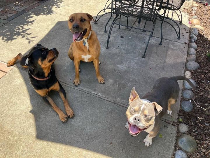 Maggie is a 3.5-year-old, 65 lb. Rottie/bully mix. She has lived with cats in the past, and has met but not lived with small kids. As a result, we initially recommend her for a home with children over the age of 12, and only dog-savvy cats.