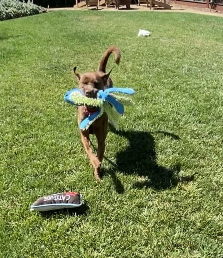 At home, Max loves being around his people. He loves playtime (tug, fetch) as much as he does cuddling up with his humans and asking for scratches and belly rubs. When his foster parents are working, Max is very content snoozing next to them or close by. Max can be a bit of a shadow-dog and will follow you around the home, even to the bathroom! He is house-trained (knows to potty outside) and has a good grasp of basic commands (sit, stay, down, leave it). He’s working with his foster parents on waiting to get the “OK” before eating and he’s doing very well!