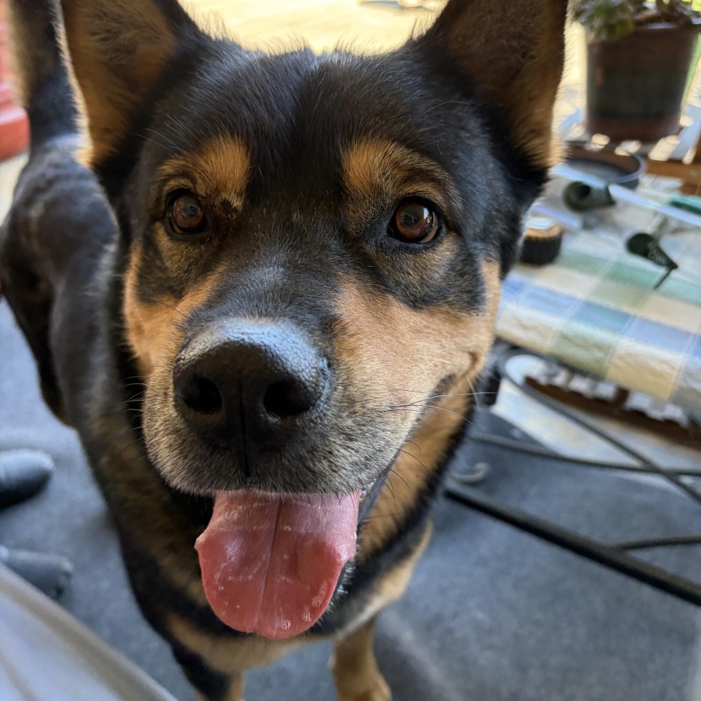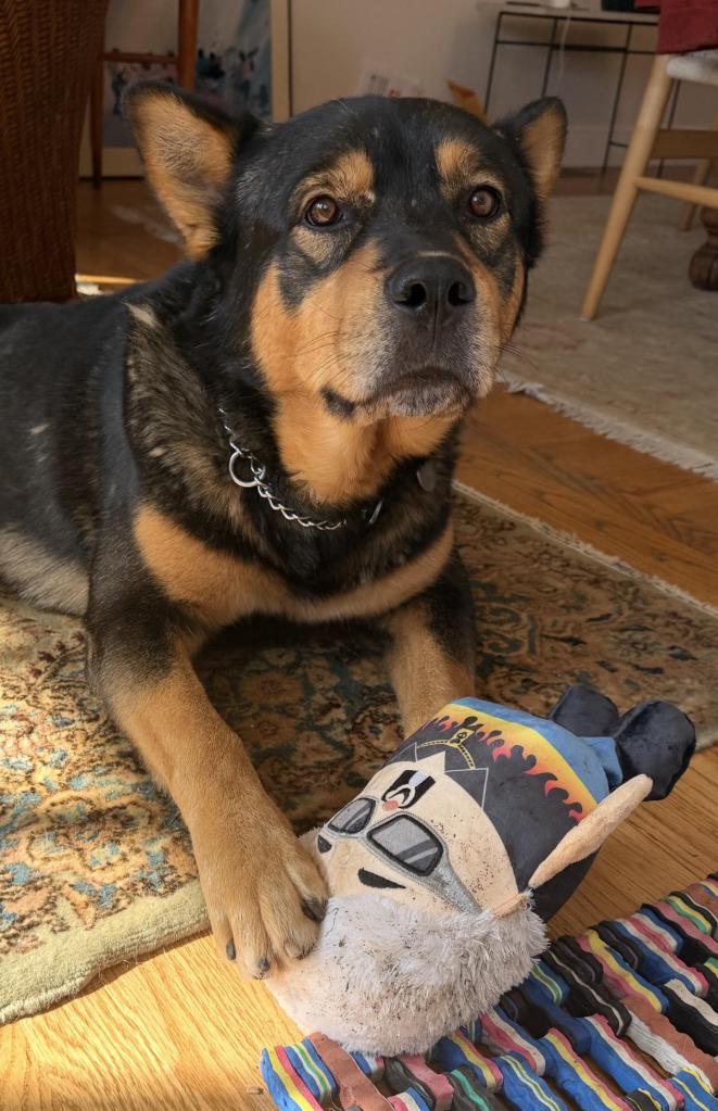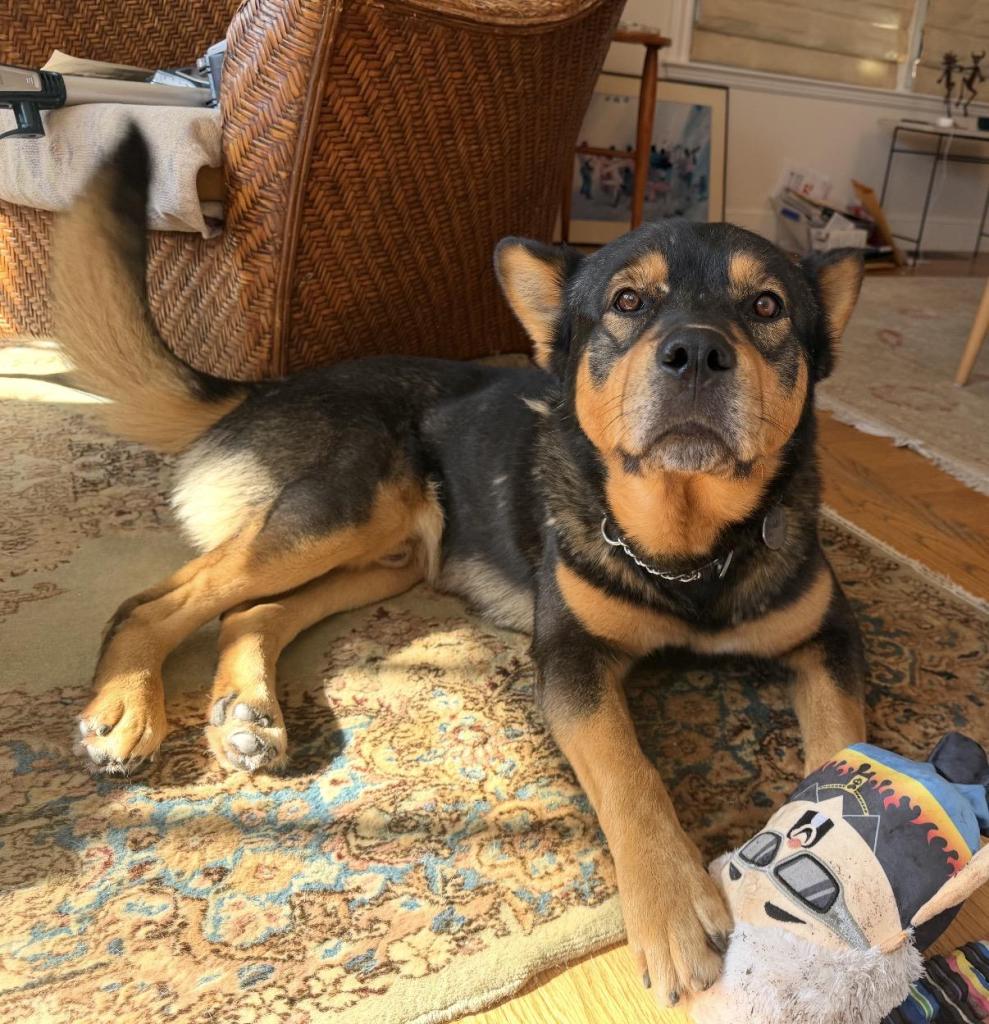 Moose is a gentle giant you can’t take your eyes off. He’s curious, playful at times, and also very much a man of leisure. He loves his toys, is a dedicated sniffer on walks, an observer in the yard, and truly enjoys his uninterrupted downtime.