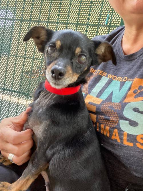 Peanut has cloudy & dry eyes for which she is given eye drops daily. She is a sweetheart when receiving the drops and does not resist medication. Baths and wearing clothes however, are not her favorites! Peanut is quite polite, and not much of a barker. Peanut is working on her potty training, as we believe she was either kept as an outdoor dog or pad trained.
