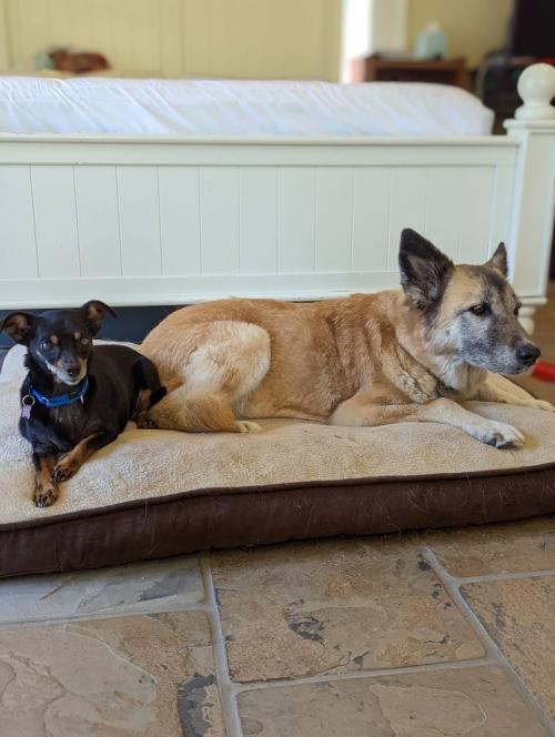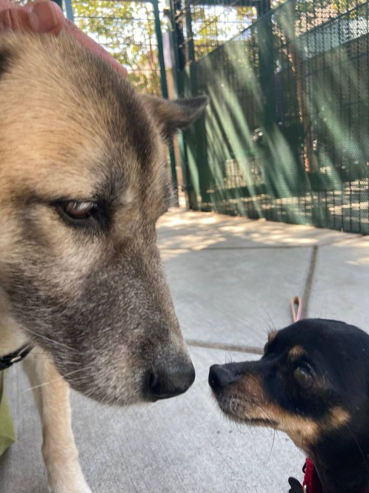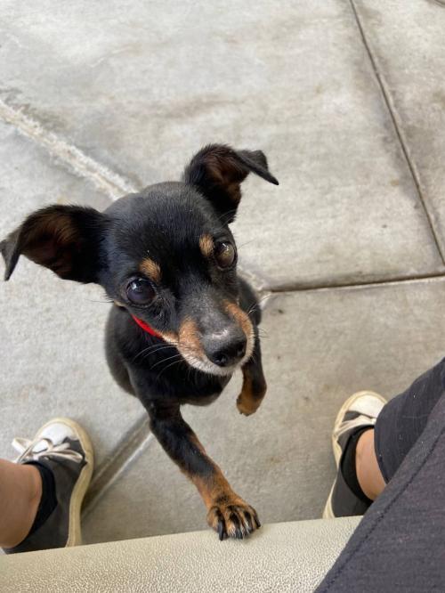 8+ year old Dachshund mix Peanut is a small, sweet lady who enjoys walking, playing and of course, napping! She was a little overweight when we got her but she has been steadily losing weight due to her daily 30+ minute walks. Peanut is an easy going girl, who enjoys going for walks and running around the backyard. She will solicit attention by play bowing to you and asking you to play with her. She enjoys snuggling up with toys and people and is content to sleep most of the day away and be active when you are active.
