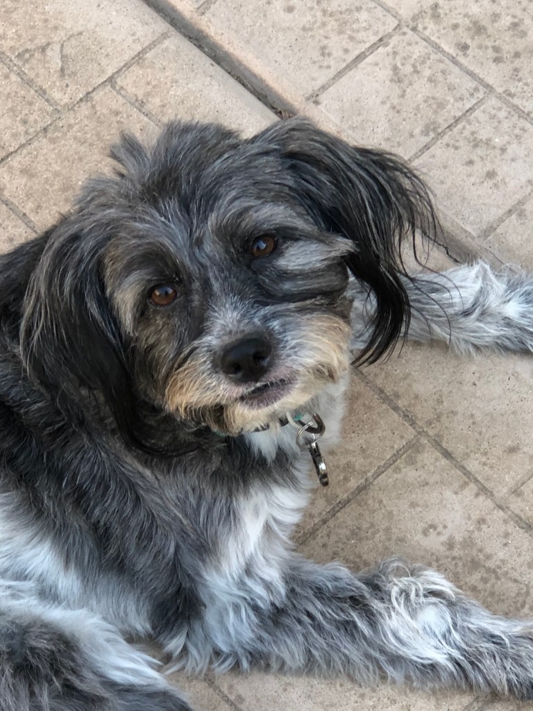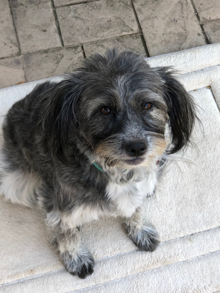 Pepper is the third rescue dog I have had. There is always a risk involved and I have been very fortunate in every adoption in getting excellent dogs. Pepper is not anything like I thought I wanted! I wanted a white, curly haired, pure bred, lap dog (HA). Pepper is a mixture of black and gray with “Picasso patches of white” under a long-haired Shit Zhu coat. If I had seen her coloration after her first hair cut, she probably would have been named “Patches”. She is a dog with an interesting personality. It is obvious that she has been abused somewhere in her past, but she is slowly overcoming some of her fears. She is very smart and was the top of her Obedience Classes. Pepper has an attitude and wants to be the boss. She demonstrates this by putting nose as far as she can to the ceiling or retreating to her favorite pad in the bedroom. It is hard not to laugh at her. I love her and I know she loves me, but she is very careful about showing it. It would be wonderful to know her story. I think that God placed us together for a special reason. We both were looking for love and Pepper is learning how to trust it. She was the perfect dog for me. She will be 2 years old on December 15. Pepper is also on a diet since she has gained 2 lbs. since she came here. That we have in common too.