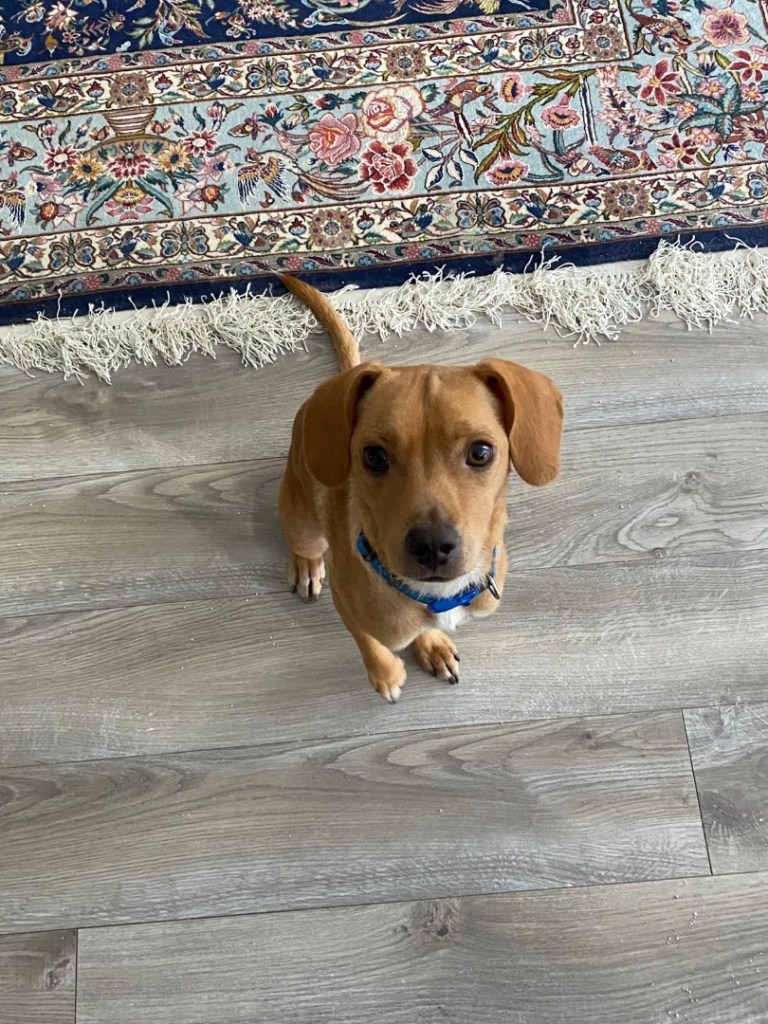 Because he is treat-motivated and eager to please, Petey is easy to train. Almost anything is a treat to this boy; he will feel spoiled whether you give him jerky or carrots! Petey is house-trained, walks nicely on a leash, sits for a treat, and sleeps in his crate. He is learning to stay in his crate when his people leave, and that it’s ok to meet new people and dogs when leashed. Petey loves playing with other dogs, even if they are much bigger than he is. He even shares his toys with his doggie friends! Because Petey is social, it is easy to burn off his puppy energy at a dog park.