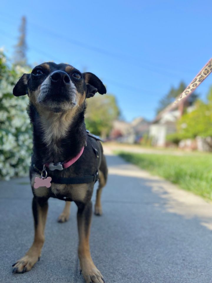 She’s currently being fostered in a wonderful home. She appears to be about 2-3 yrs old, 11lbs and spayed. Although she can be shy with new people and dogs, once she’s allowed time to observe and relax, she learns that she can trust again. Tessa may let you know she needs more space with a snarl or a growl. She is currently decompressing in a home with 2 larger dogs and is enjoying walks as a pack.