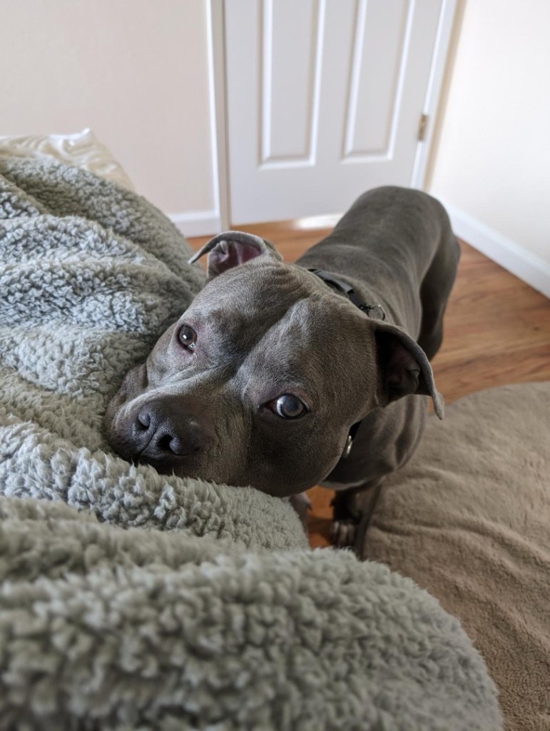 This easy-going boy loves cuddles and making his people happy. Luckily, he’s great at both! If you want to laugh, just turn on a sprinkler and Yodi will frolic in the water. If you want to cry, Yodi will climb on your lap and lick your face. Yodi is ready to be whatever you need!